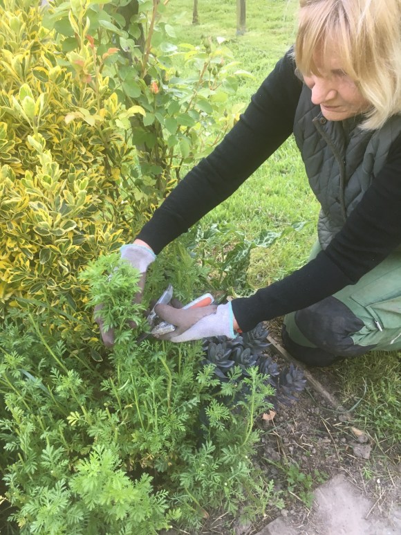 So what you do is grab the stems with one hand and chop them off with the secateurs held in the other hand, down to about half their height. BOOM! It feels brutal, but it will make them flower a little later and at a much sturdier height, require less staking etc. The prunings can go on the compost heap. Or turn them into softwood cuttings, maybe……….